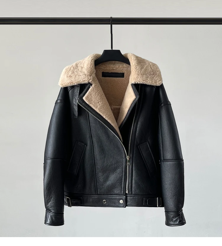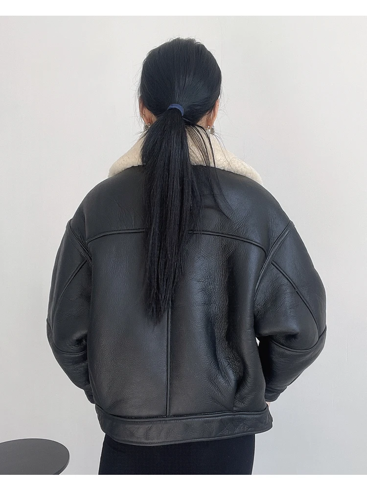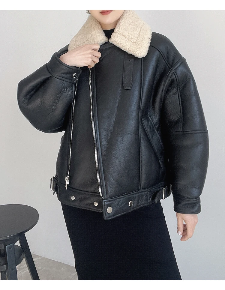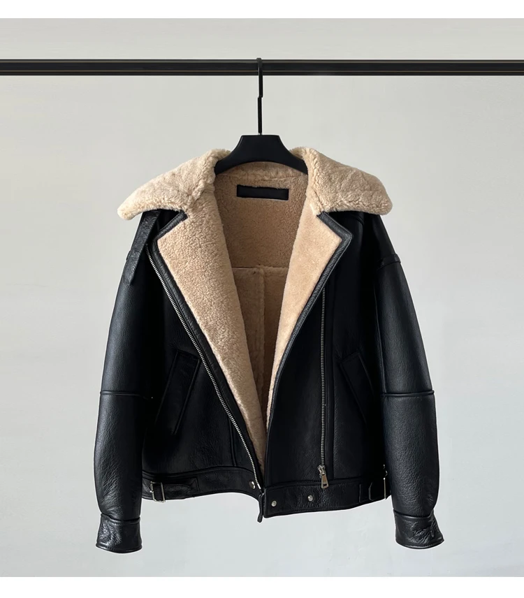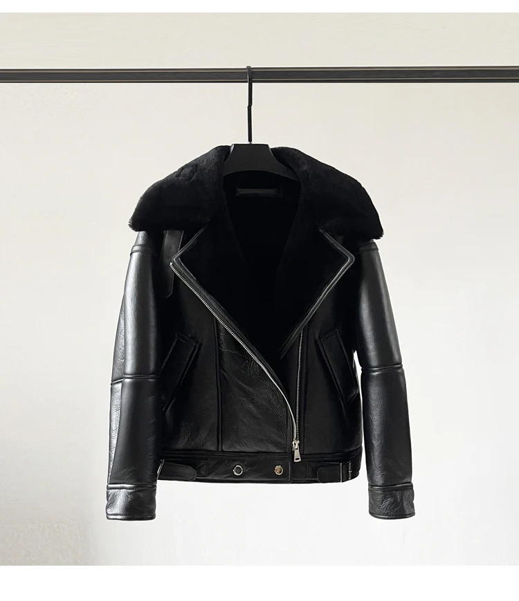 2025 Winter Genuine Sheepskin Shearling Jackets for Women Thicken Warm Real Leat