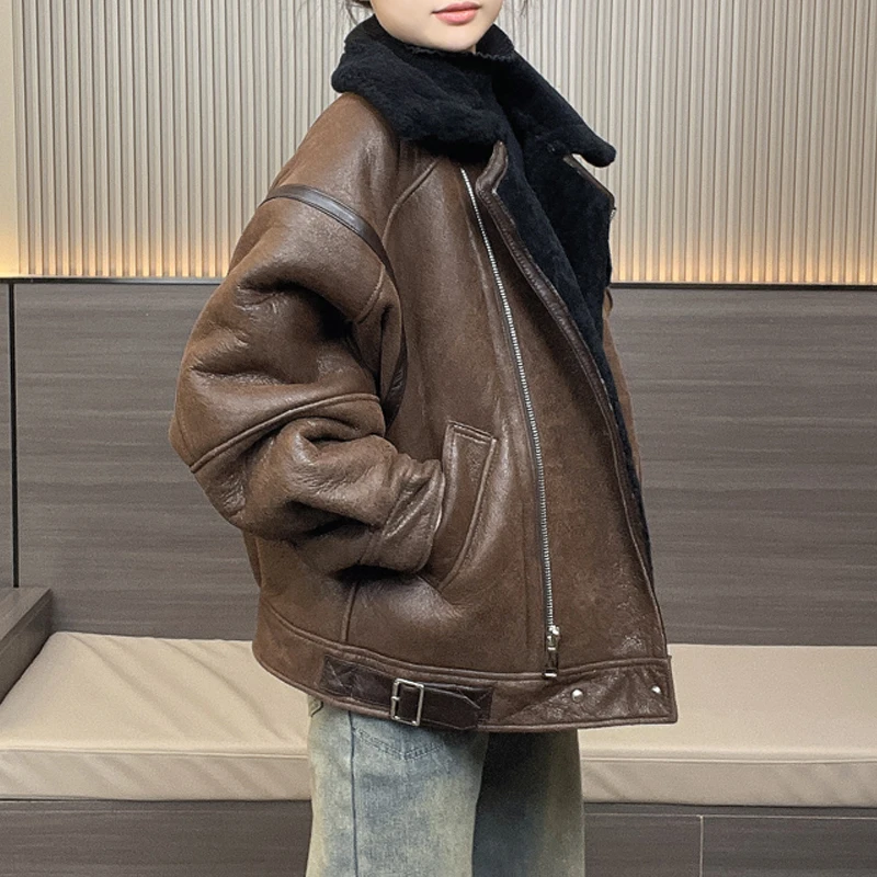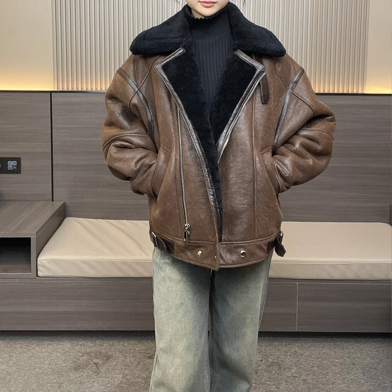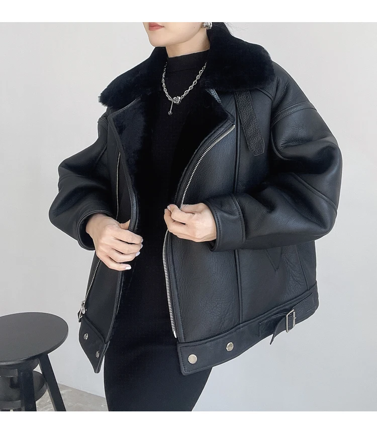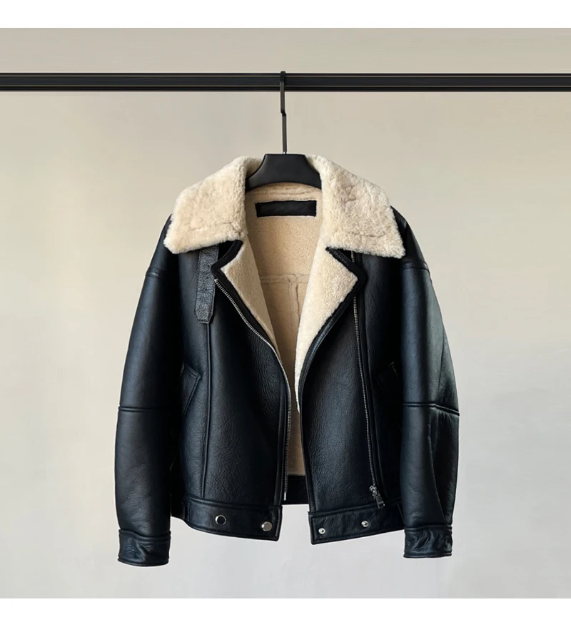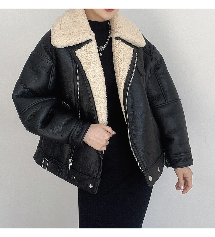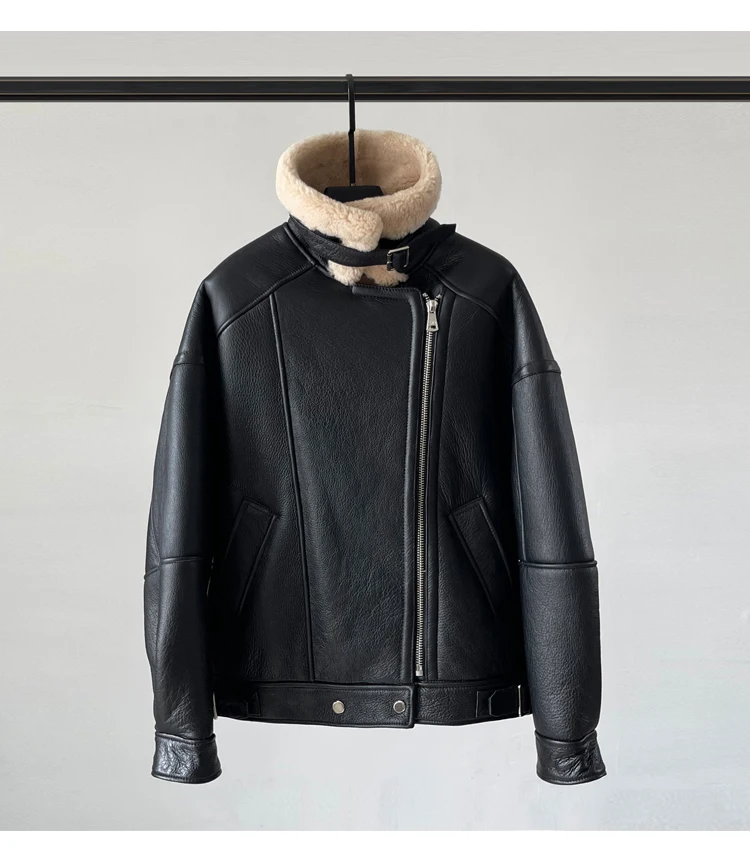 2025 Winter Genuine Sheepskin Shearling Jackets for Women Thicken Warm Real Leat