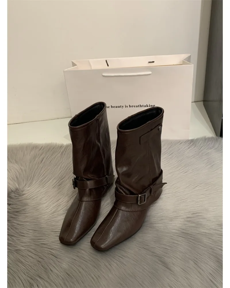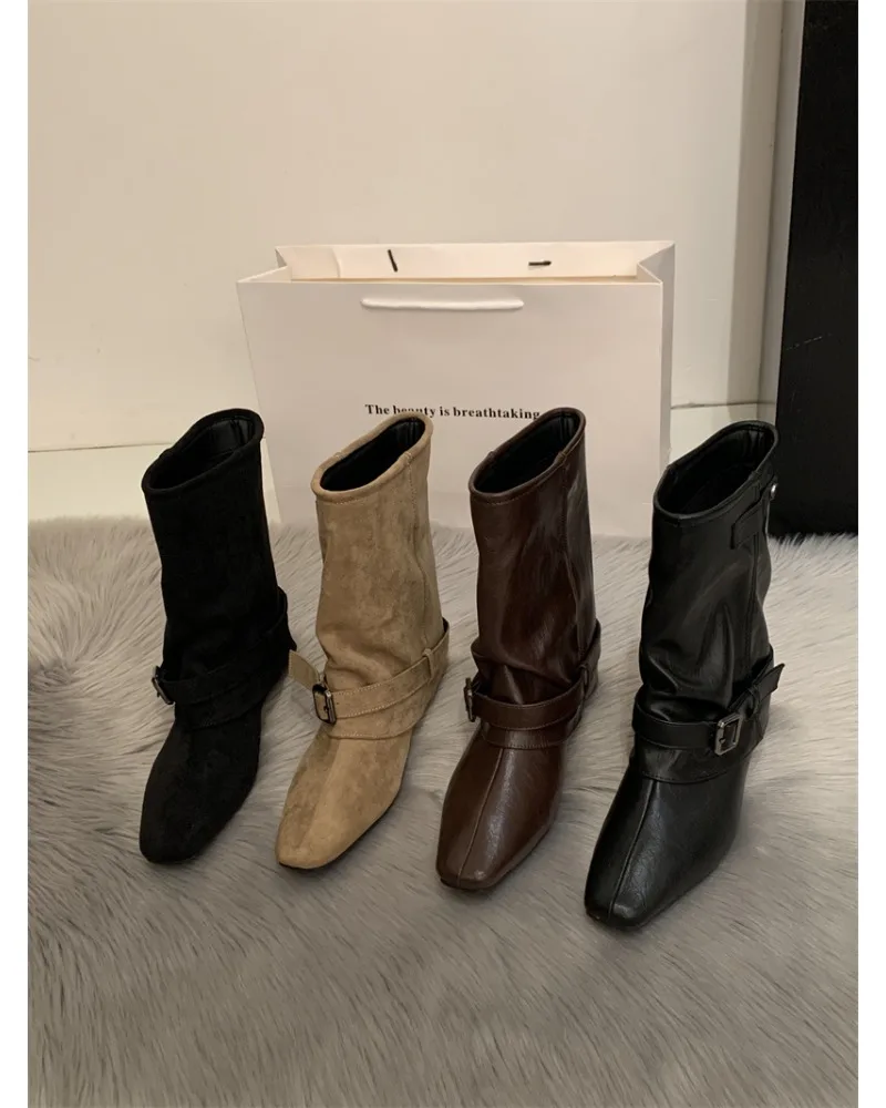 Designer Women Knight Boots Fashion Wedges Low Heel Dancing Dress Shoes Street S