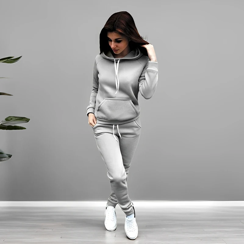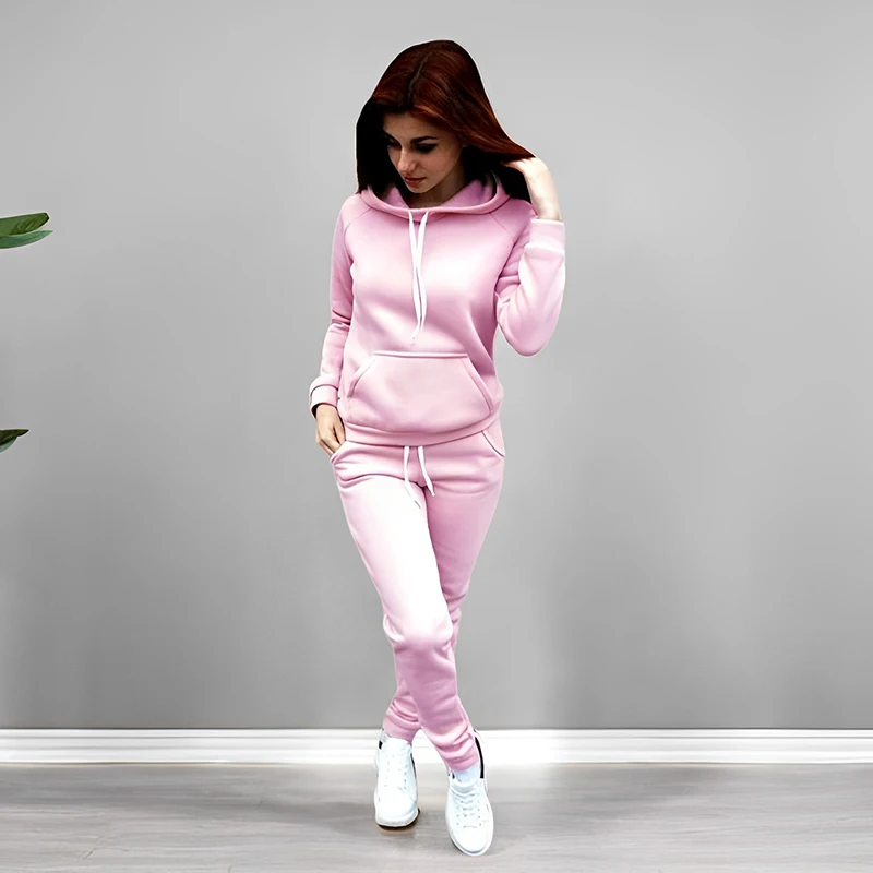 High Quality Pure Color Tracksuit Female Casual Sport Outfit 2025 Fall Winter Ho